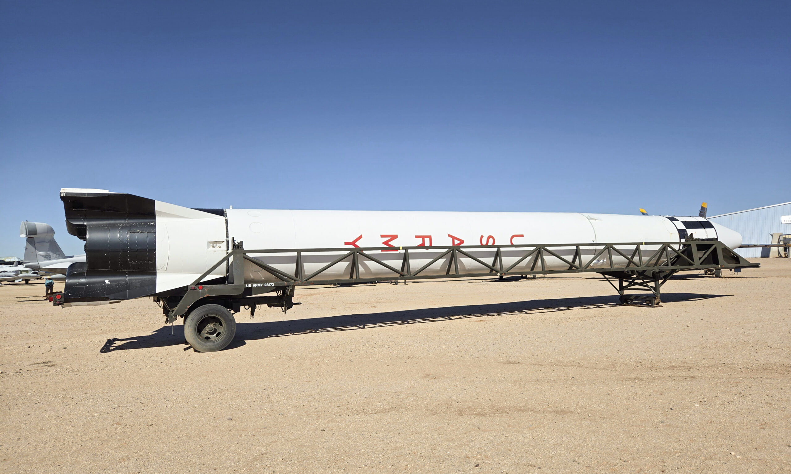 The Programmed Guided Missile 11 (PGM-11) Redstone was America’s first large ballistic missile during the Cold War. Introduced in 1958, the PGM-11 was the American version of the famous German V-2 Rocket used in World War II. In the early 1950s, the U.S. Army was seeking a ballistic missile that could outrange conventional artillery. Named for Redstone Arsenal, Alabama, where it was developed, the Redstone was designed by a team of German rocket engineers led by Wernher von Braun. Development of the Redstone began in 1951, with the first missile test being launched in August 1953.