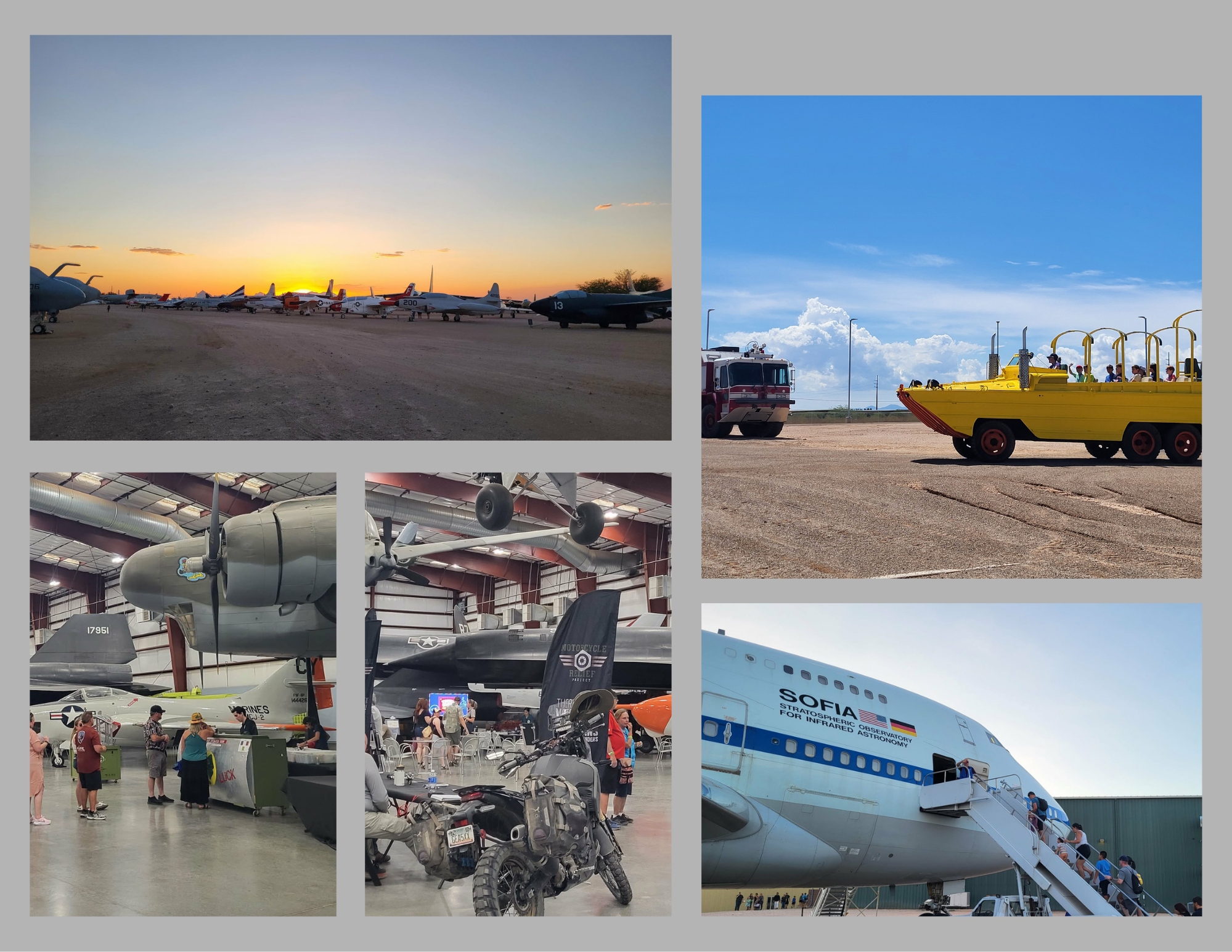 - Military vehicle shuttle through the museum’s restoration area between the Tucson Military Vehicle Museum and Pima Air and Space Museum