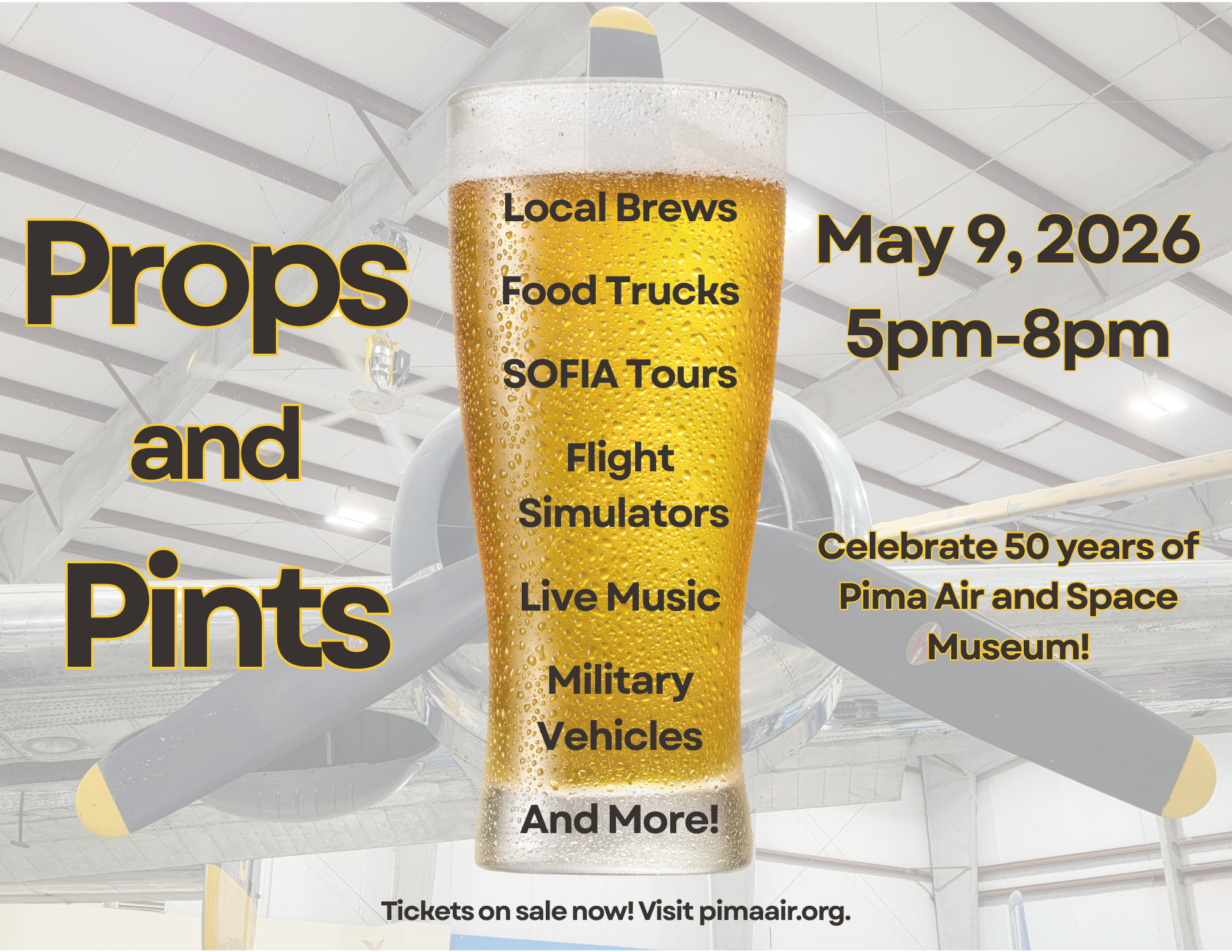 Get ready for an unforgettable evening at Props and Pints, a one-of-a-kind beer festival where aviation, military history, and craft brews collide for a high-flying event. This beer fest includes a tour inside the Queen of the Skies, the iconic 747SP SOFIA, a fire show, live music, and more. Amp it up with our Flight Simulators and watch military vehicles zip around while you sip it down. This is a 21 and over event.