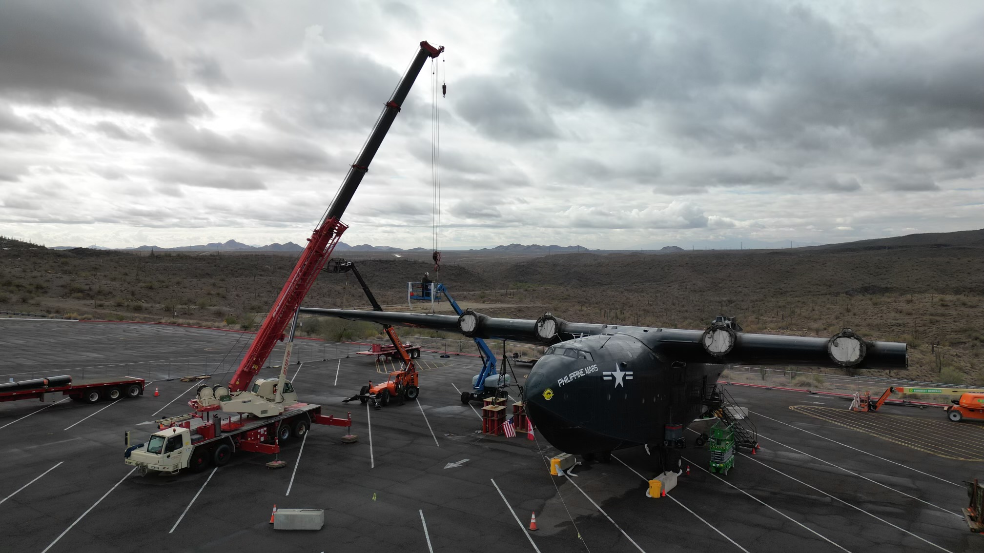 When the weather permitted on February 12th, Philippine Mars was pulled up the boat ramp to be prepared for the final leg of the journey to museum immortalization. A pure flying boat without landing gear, Mars aircraft need large bodies of water to land. It was dismantled at Lake Pleasant for trucks to haul it down to Tucson, Arizona. The fuselage arrived to Pima Air & Space Museum just before midnight on May 16th and the aircraft was reassembled for display piece-by-piece over the following months.
